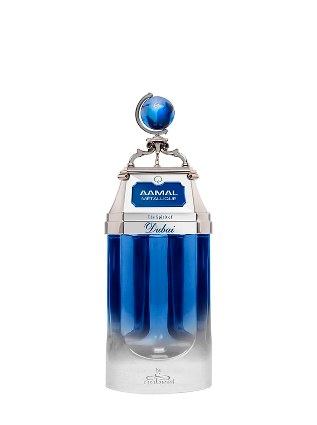 Aamal Métallique es una fragancia moderna y sofisticada que combina la elegancia clásica con un toque contemporáneo. Sus notas metálicas y orientales se mezclan con matices amaderados y especiados, creando un aroma distintivo y envolvente. Inspirada en el lujo vibrante de Dubai, Aamal Métallique es ideal para quienes buscan un perfume único, que destaque tanto en ocasiones especiales como en el día a día.